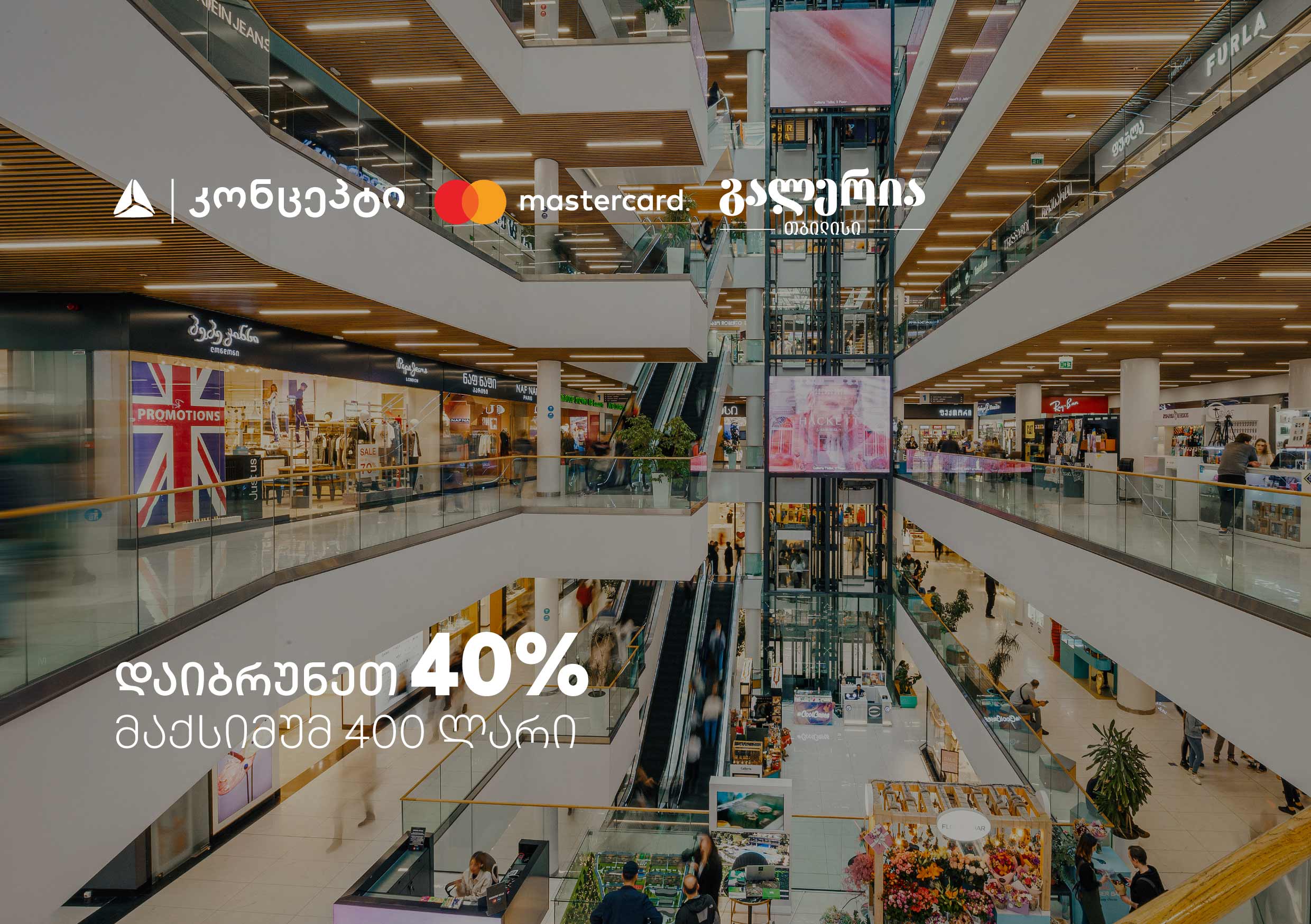 თიბისი, როგორც მომხმარებლებზე ორიენტირებული კომპანია, მუდმივად მრავალფეროვანი შეთავაზებებით გამოირჩევა. მორიგი მასშტაბური შეთავაზება მომხმარებლებს დღეს, 9 სექტემბერს, გალერია თბილისის შერჩეულ ობიექტებში დაგხვდებათ, სადაც თიბისი კონცეპტის Mastercard სადებეტო ბარათით გადახდისას, გადახდილი თანხის 40%, ჯამში მაქსიმუმ 400 ლარი, მომენტალურად დაგიბრუნდებათ.