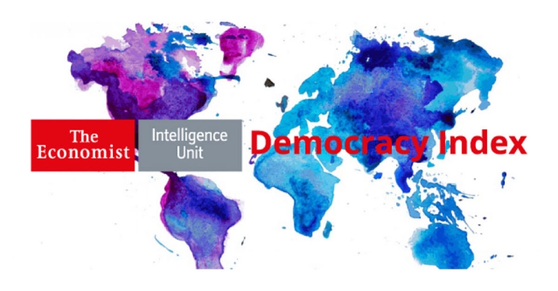 დემოკრატიის ინდექსს გავლენიანი ბრიტანული გამოცემა “THE ECONOMIST“-ი აქვეყნებს. დემოკრატიის დონე საარჩევნო პროცესის, მთავრობის ფუნქციონირების, პოლიტიკაში მონაწილეობის, პოლიტიკური კულტურის და სამოქალაქო თავისუფლების მიხედვით არის განსაზღვრული. ინდექსში საქართველო 89-ე ადგილს იკავებს 5.50 ქულით. საქართველო ჰიბრიდული რეჟიმის ქვეყნების ჯგუფში ხვდება, რაც ნიშნავს, რომ არ ტარდება სრულად სამართლიანი და თავისუფალი არჩევნები, მთავრობა პოლიტიკურ ოპონენტებზე ზეწოლას ახორციელებს, სასამართლო არ არის დამოუკიდებელი, გავრცელებულია კორუფცია და ა.შ.