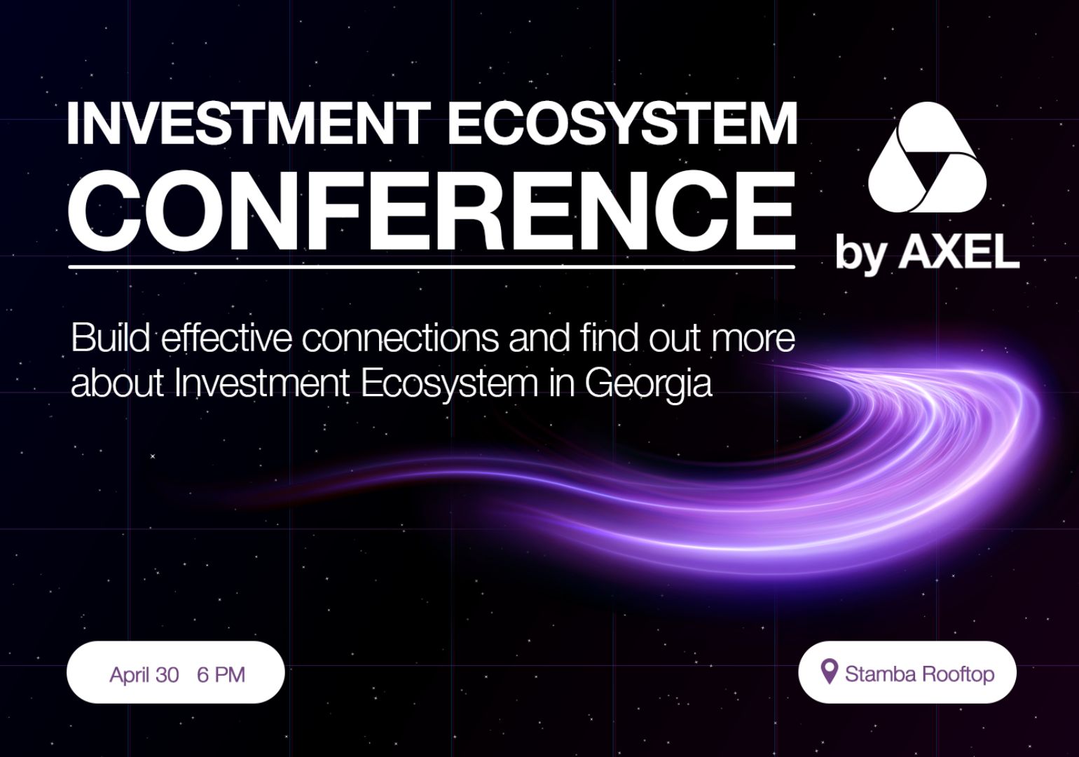 2023 წლის 30 აპრილს აქსელი, Orient Logic-ის მხარდაჭერით, მასშტაბურ საერთაშორისო კონფერენციას გამართავს ინვესტიციების შესახებ, რომელსაც დაესწრებიან ქართველი და უცხოელი ანგელოზი ინვესტორები, მოწვეული სტუმრები, ექსპატები, დიჯითალ-ნომადები, ფრილანსერები და სტარტაპები. ღონისძიების ფარგლებში დაგეგმილია რამდენიმე განსხვავებული სესია და პანელი. აქსელის პორტფელში არსებული ტექნოლოგიური სტარტაპები აუდიტორიის წინაშე წარდგებიან და ბიზნესის განვითარებისათვის ინვესტიციების მოზიდვას შეეცდებიან. კონფერენცია, ასევე, პანელური დისკუსიებისა და პრეზენტაციების ნაწილსაც მოიცავს, სადაც მოწვეული სპიკერები საქართველოს საინვესტიციო ეკოსისტემაზე ისაუბრებენ.