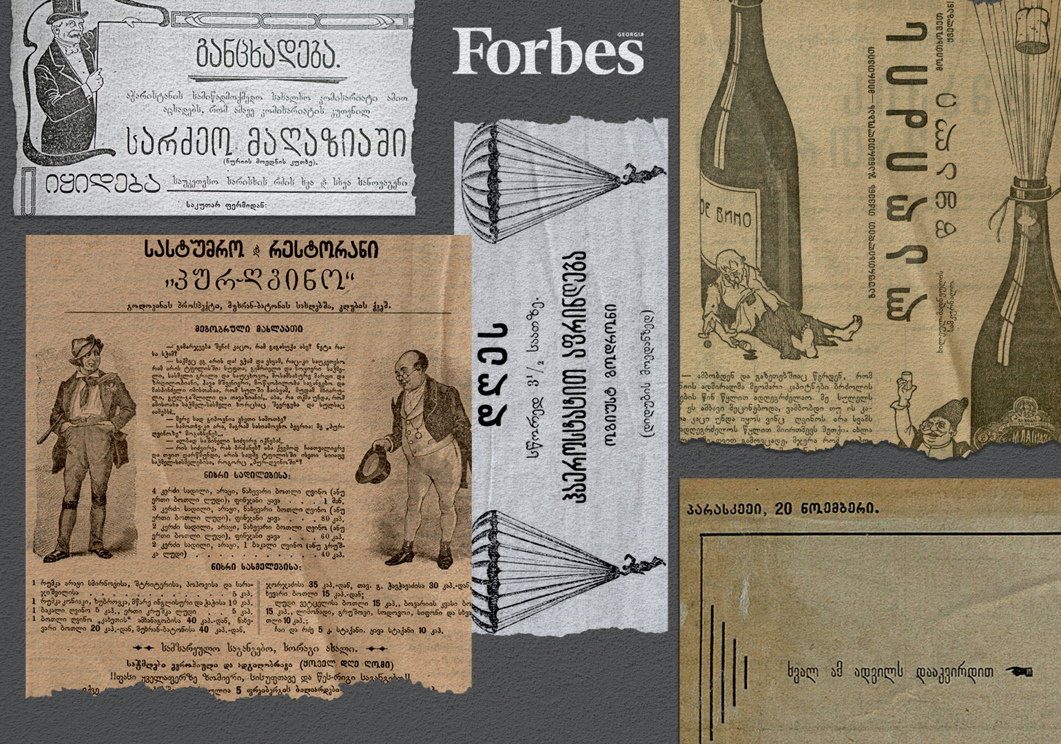 რა პროდუქტის თუ სერვისის რეკლამას არ შეხვდებით ძველ ქართულ პრესაში: კვების ინდუსტრია გნებავთ, HoReCa სექტორი, ახალი პროდუქტები, ბეჭდური გამოცემები თუ პერსონალური განცხადებები და ღონისძიებები.