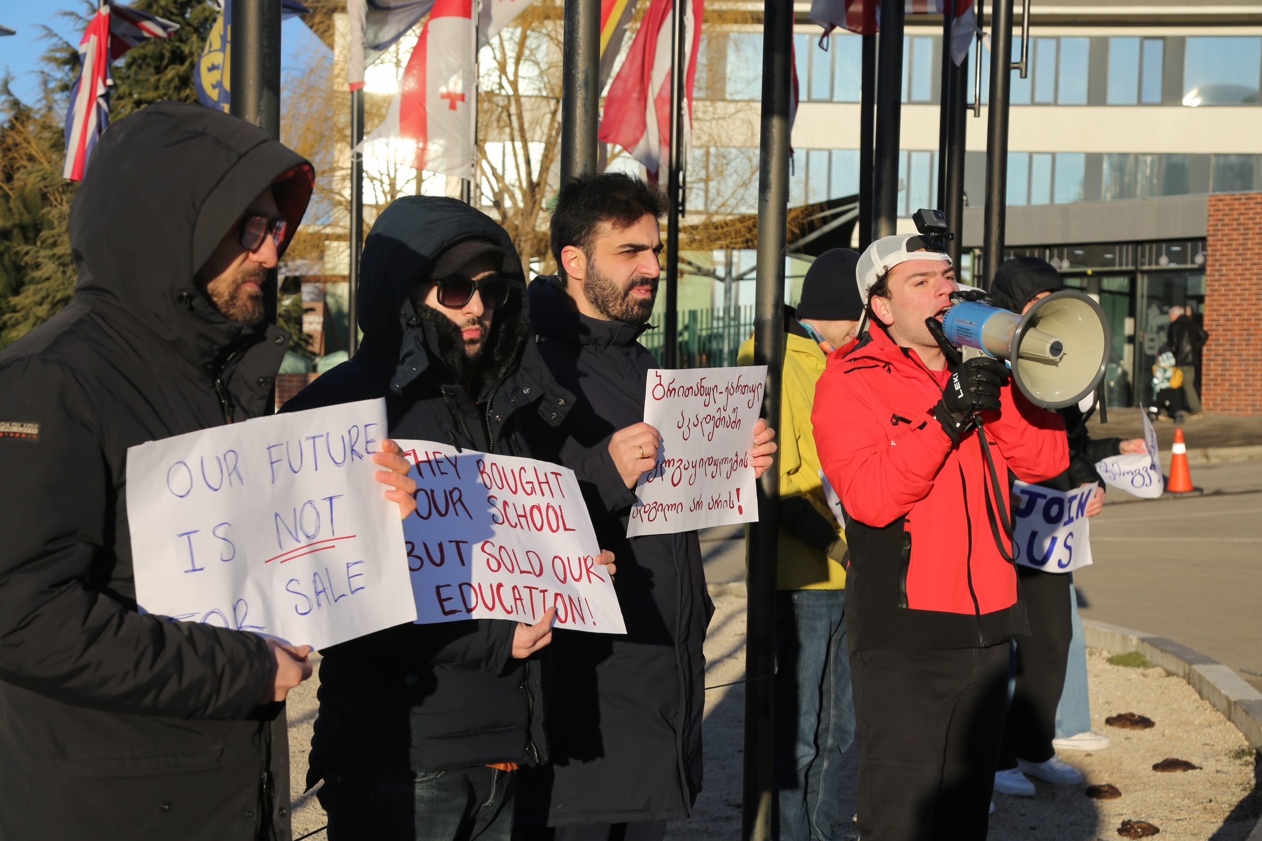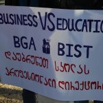 ბრიტანულ–ქართული აკადემიის კურსდამთავრებულებმა დღეს დილით, 8:00 საათზე, სკოლის შესასვლელთან საპროტესტო აქცია გამართეს. ისინი ინვესტორი კომპანიის მიერ სკოლის მენეჯმენტში უხეშ ჩარევას აპროტესტებდნენ და მოითხოვდნენ დირექტორის თანამდებობაზე აკადემიის დამფუძნებელი პარტნიორის ნათია ჯანაშიას დაბრუნებას. “ინვესტორი ხედავს ფულს და არა განათლებას”, “BGA ოკუპირებულია”, “იყიდეს სკოლა, გაყიდეს განათლება”, “ბრიტანულ-ქართულ აკადემიაში სულგაყიდულების ადგილი არ არის” – ამ შინაარსის ტრანსფარანტებით აღჭურვილი დემონსტრანტები სკანდირებდნენ: “კეთილაძე, გამოდი!“.