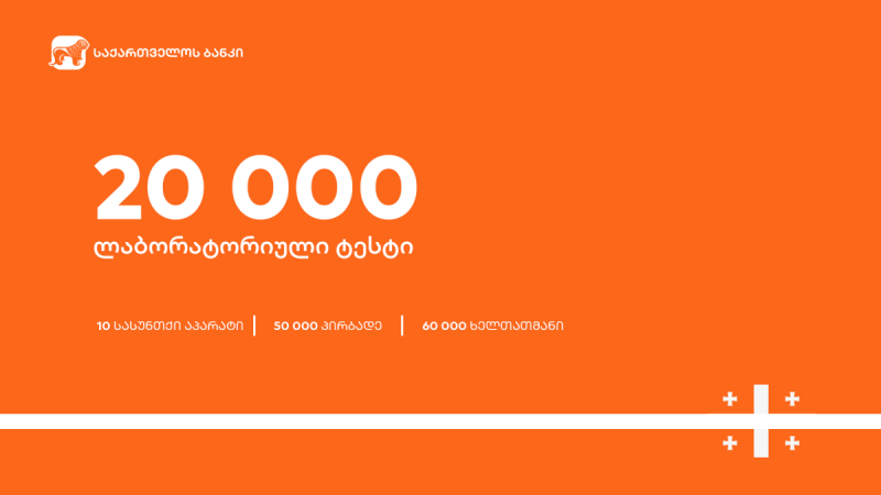 საქართველოს ბანკი COVID 19-ის გავრცელების საწინააღმდეგო ზომების მიღებას აგრძელებს. იმისთვის რომ საერთო ძალებით წინ აღვუდგეთ პანდემიას, საქართველოს ბანკი ჯანდაცვის სამინისტროსთვის ამ ეტაპზე ყველაზე საჭირო სამედიცინო ნივთებს – ლაბორატორიულ ტესტს, სასუნთქ აპარატს, ხელთათმანსა და პირბადეს შეიძენს. 20 000 ლაბორატორიული ტესტი, 10 სასუნთქი აპარატი, 50 000 პირბადე და 60 000 ხელთათმანი ერთ კვირაში უკვე საქართველოში იქნება და ის ვირუსთან ბრძოლის ეფექტურად გასაგრძელებლად მთლიანად გადაეცემა ჯანდაცვის სამინისტროს.