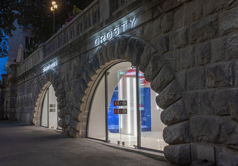 200 კვ.მ.-ზე განთავსებული კონცეპტუალური მაღაზია მდებარეობს ღვინის ქარხნის შენობაში და წარმოადგენს სივრცეს, რომელიც სცდება ტრადიციული მაღაზიის ჩარჩოებს და აერთიანებს ხელოვნების და შოპინგის ახალ გამოცდილებას. მაღაზიაში განთავსებულია საგამოფენო სივრცე, სადაც ქროსთის მხარდაჭერით გამოიფინება ქართველი არტისტების ნამუშევრები. ინდუსტრიული ჭერი, მინიმალისტური დიზაინი, და ნათელი ფერები ქმნის სრულიად ახალ ემოციურ გარემოს.