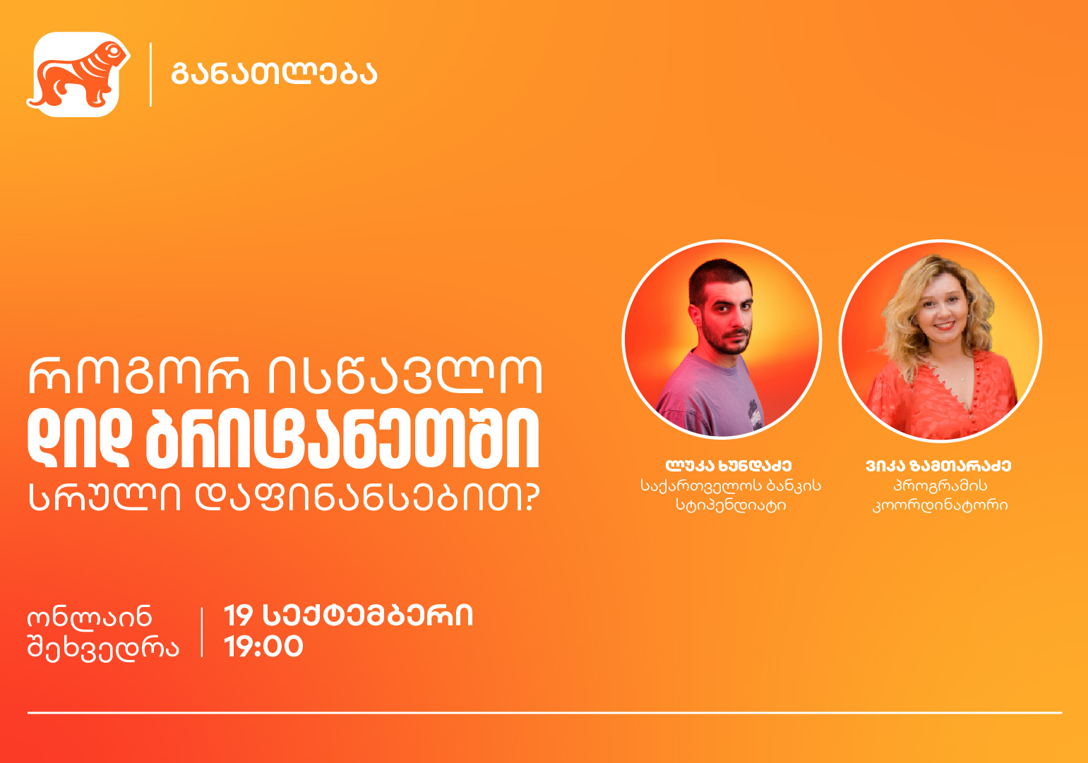 ღონისძიების ფარგლებში, საქართველოს ბანკის სტიპენდიატი – ლუკა ხუნდაძე და CHEVENING-ის პროგრამის კოორდინატორი – ვიკა ზამთარაძე მონაწილეებს მათთვის საინტერესო კითხვებზე პასუხებს გაუზიარებენ. კერძოდ, ვებინარის მონაწილეები გაიგებენ: