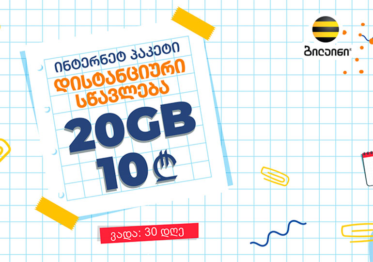 ბილაინი, საერთაშორისო ჯგუფ „ვიონის“ წევრი, 15 სექტემბრიდან, დისტანციური სწავლების ხელმისაწვდომობის უზრუნველყოფის მიზნით, საქართველოს განათლებისა და მეცნიერების სამინისტროსთან თანამშრომლობის ფარგლებში, საჯარო და კერძო სკოლის მოსწავლეებსა და მასწავლებლებს შესაძლებლობას აძლევს ისარგებლონ სპეციალურად დისტანციური სწავლებისთვის შექმნილი ინტერნეტ პაკეტით. მისი ღირებულება 10 ლარს შეადგენს და 20GB მობილურ ინტერნეტს მოიცავს. მოქმედების ვადა კი 30 დღეა.