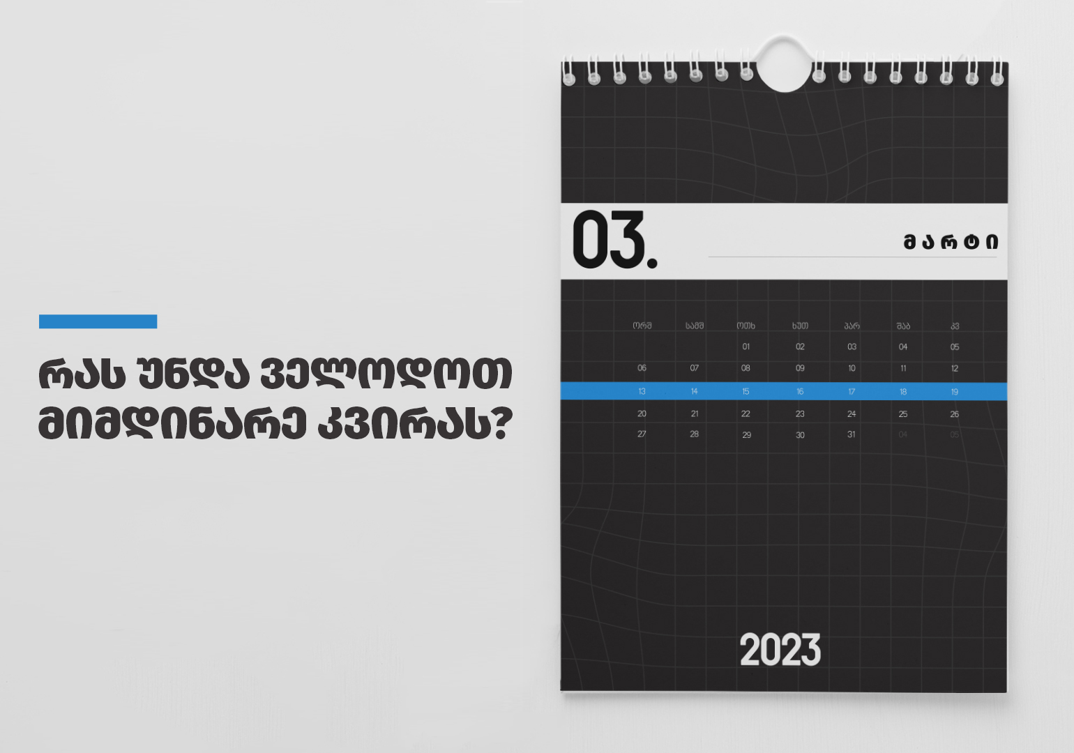 საქართველოში კი მიმდინარე კვირას საქსტატი 2023 წლის თებერვლის საგარეო ვაჭრობის ექსპრეს-მონაცემების გამოქვეყნებით დაიწყებს. შუა კვირაში დაგეგმილია თებერვლის საარსებო მინიმუმის შესახებ მონაცემის გასაჯაროება, ასევე მიმდინარე კვირასვე მოსალოდნელია ადგილობრივი ტურიზმის სტატისტიკის (2022 წლის წლიური, 2022 წლის IV კვარტალი), ნამუშევარი საათების ინდექსის (2022 წლის IV კვარტალი), ბრუნვის მოცულობის ინდექსის (2023 წლის იანვარი) და დაქირავებით დასაქმებულთა საშუალო თვიური ნომინალური ხელფასის (2022 წლის IV კვარტალი) გამოქვეყნებაც.