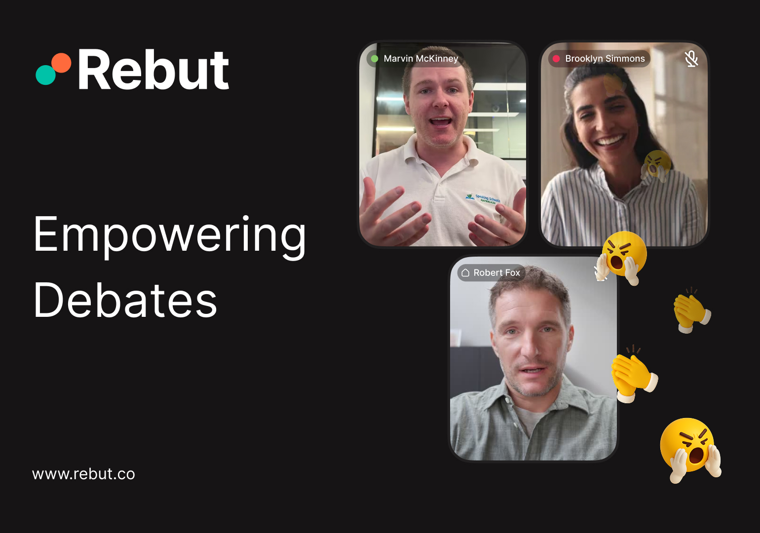 Rebut is a digital platform designed for structured video debates. With live and recorded debates, global tournaments, and an AI-powered algorithm that connects people with opposing views, Rebut is built to help Gen-Z lead a new era of civil conversation online.