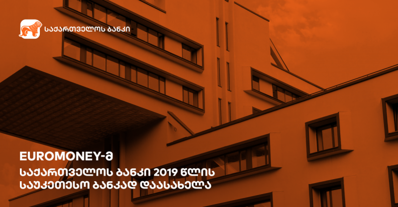 ავტორიტეტულმა ფინანსურმა ჟურნალმა, EuroMoney-მ საქართველოს ბანკი საქართველოში 2019 წლის საუკეთესო ბანკად აღიარა. ბანკმა ჯილდო 2019 წელს ნაჩვენები ფინანსური სტაბილურობისთვის, არჩეული სტრატეგიისა და მუდმივად განახლებადი ციფრული შესაძლებლობებისთვის მიიღო.