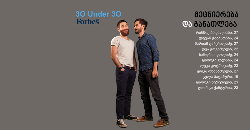 Forbes Georgia პროექტს 30 Under 30-ს იწყებს. ჩვენ შევადგინეთ ქართველი ოცდაათწლამდელი წარმატებული ახალგაზრდების ასეული, ვის შერჩევაშიც სხვადასხვა სფეროს ექსპერტები დაგვეხმარნენ.