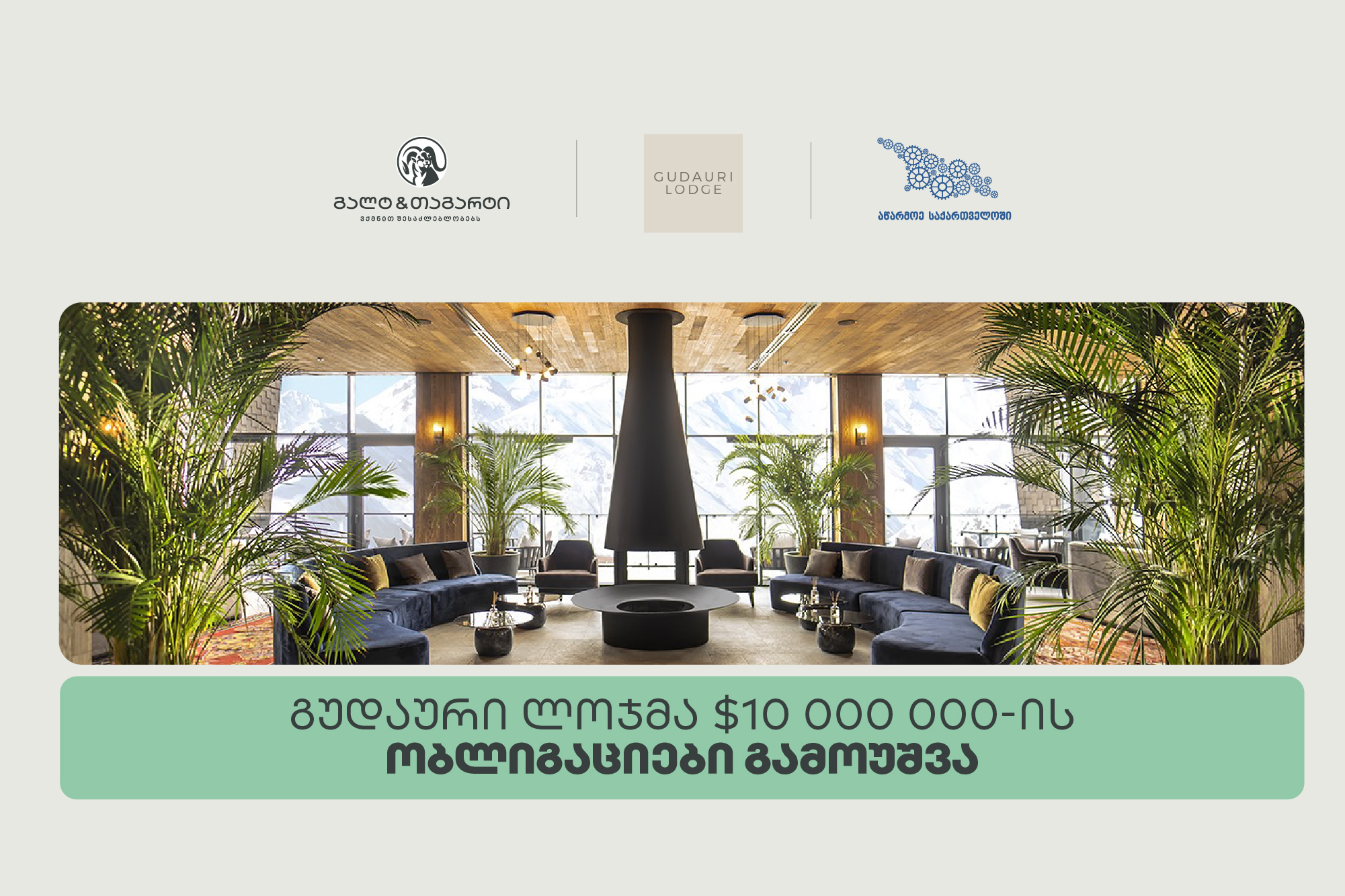 შპს „გუდაური ლოჯმა“ გალტ & თაგარტის ექსკლუზიური პარტნიორობით 10 მილიონი აშშ დოლარის მოცულობის სადებიუტო ობლიგაციები წარმატებით გამოუშვა. ეს ნაბიჯი კომპანიის ფინანსური განვითარების მნიშვნელოვან ეტაპს წარმოადგენს. აღსანიშნავია, რომ ტრანზაქცია სააგენტოს აწარმოე საქართველოში „კაპიტალის ბაზრის მხარდაჭერის პროგრამით“ დაფინანსდა.