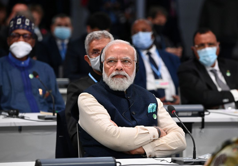 ინდოეთი ნახშირორჟანგის ერთ–ერთ ყველაზე დიდ ემიტენტს წარმოადგენს. ქვეყანა, სადაც მსოფლიო მოსახლეობის დაახლოებით 17% ცხოვრობს, ნახშირორჟანგის გლობალური ემისიის 5%–ს გამოყოფს. შესაბამისად, საკმაოდ რთულია ნულოვანი ნიშნულის მიღწევა. აღსანიშნავია, რომ მოდი ბოლომდე იცავდა ინდოეთის პოზიციას. მან მსოფლიო ლიდერებთან საუბრისას აღნიშნა, რომ ინდოეთი განახლებადი ენერგიის წილს მთლიან ენერგეტიკაში 2030 წლისათვის 38%–დან 50%–მდე გაზრდის.
