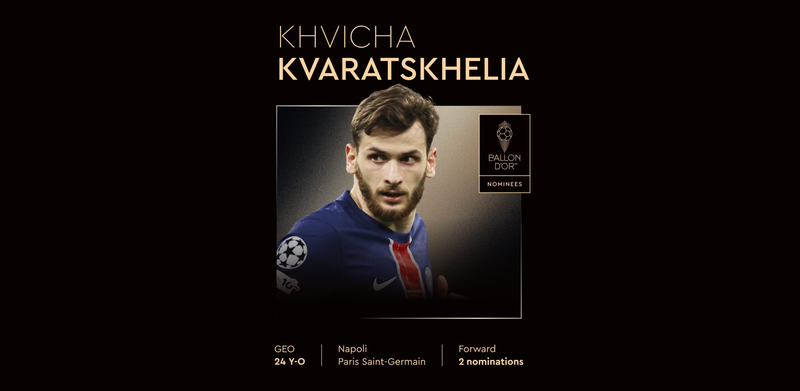 France Football-მა 2025 წლის „ოქროს ბურთის“ ნომინანტები დაასახელა. წარდგენილ 30 ნომინანტს შორის „პარი სენ-ჟერმენის“ ქართველი გარემარბი, ხვიჩა კვარაცხელია მოხვდა.