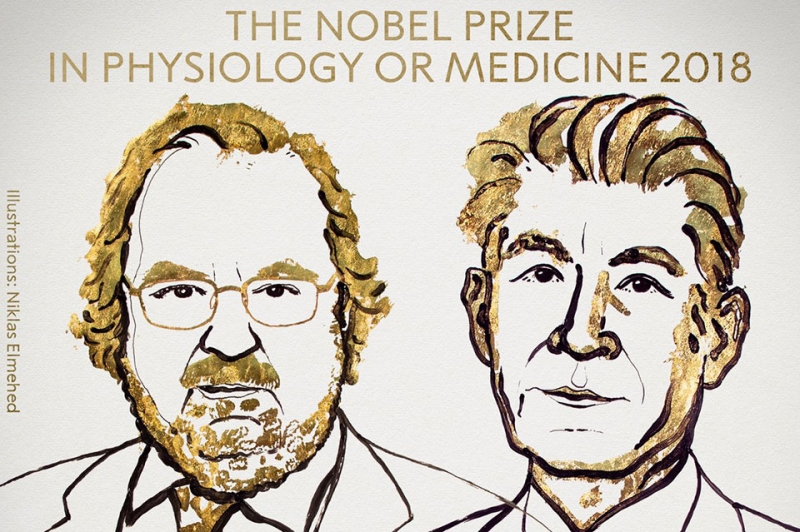 დღეს, 1 ოქტომბერს, ნობელის პრემია მედიცინის დარგში ერთობლივად გადაეცათ ტეხასის უნივერსიტეტის მკვლევარს, ჯეიმს ელისონს და კიოტოს უნივერსიტეტის მკვლევარს, ტასუკუ ჰონჯოს, კიბოს მკურნალობის ახალი მეთოდის გამოგონებისთვის.