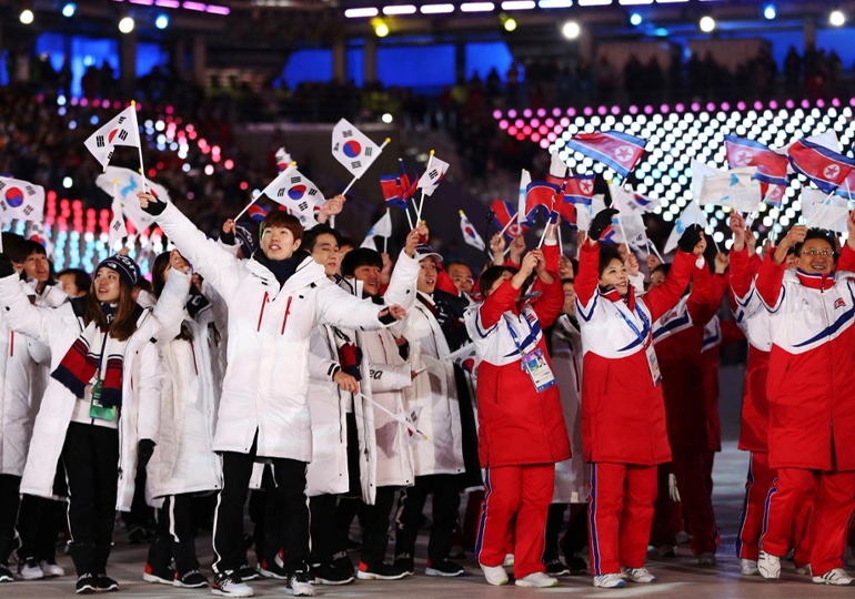 მთავარი ფოტო: სამხრეთ და ჩრდილოეთ კორეელი ათლეტები ოლიმპიადის მარშზე ერთობლივად გამოდიან
