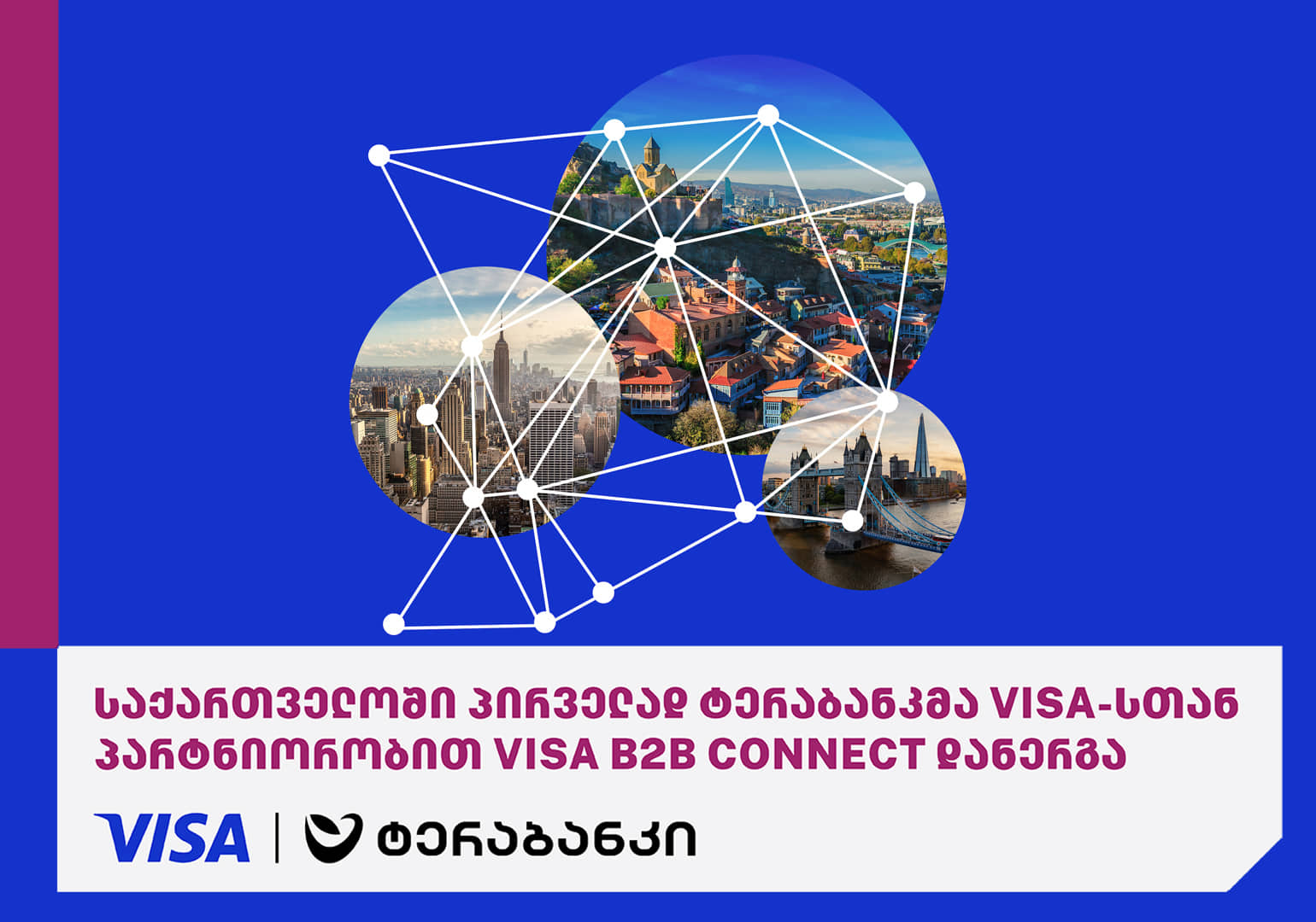 ტერაბანკი პირველი ბანკია საქართველოში, რომელმაც Visa-სთან პარტნიორობით, Visa B2B Connect პლატფორმა დანერგა და ბიზნესკლიენტებს ყველაზე სწრაფი, მოქნილი და უსაფრთხო საერთაშორისო ანგარიშსწორების სერვისი შესთავაზა.