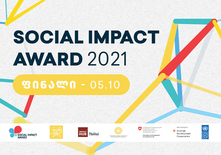 Social Impact Award 2021 ხორციელდება თიბისის პროგრამა სტარტაპერის, გაეროს განვითარების პროგრამის (UNDP), საქართველოს რეგიონული განვითარებისა და ინფრასტრუქტურის სამინისტროს, შვეიცარიის განვითარებისა და თანამშრომლობის სააგენტოსა (SDC) და ავსტრიის განვითარების თანამშრომლობის (ADC) მხარდაჭერით.
