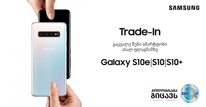 ასევე, თუ შენს სმარტფონს ოფიციალური ჰოლოგრამა ნამდვილად გააჩნია შენ ავტომატურად ერთვები “Trade-In” აქციაში. რას ნიშნავს ეს? სამსუნგი მის ქართველ მომხმარებელს საშუალებას აძლევს, გადაცვალოს მისი ძველი სმარტფონი ახალ Galaxy S10|S10+ზე. ასევე, სამსუნგი სთავაზობს განსაკუთრებულ აქციებსა და ფასდაკლებებს თავის მომხმარებლებს; მაგალითად, ამ მომენტისთვის ყველა ოფიციალური პარტნიორის ქსელში ყვითელი Galaxy S10e-ს შეიძენთ სპეციალური ფასდაკლებით განსაკუთრებულ ფასად.