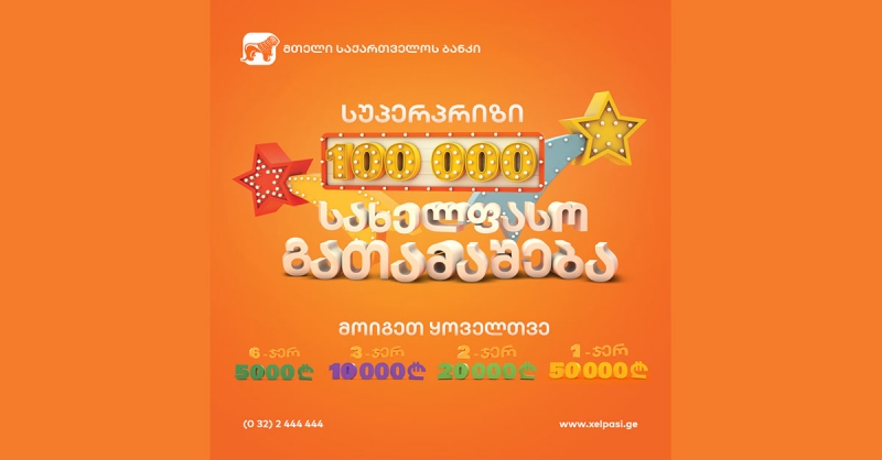 მთელი საქართველოს ბანკმა სახელფასო გათამაშების მასშტაბური აქციის შესახებ განაცხადა. გათამაშების ჩატარების ძირითად მიზანს წარმოადგენს არსებული და პოტენციური მომხმარებლის წახალისება და ყოველთვიურად მათთვის 5 000, 10 000, 20 000, 50 000 და 100 000 ლარის მოგების შესაძლებლობის მიცემა.