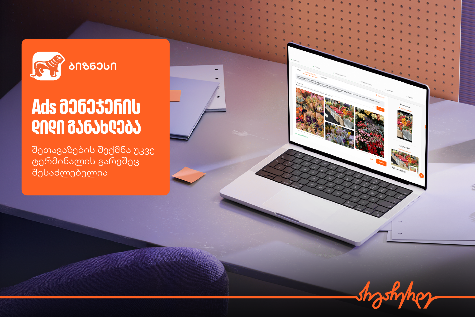 ინფორმაციისთვის, Ads მენეჯერი ბიზნეს მომხმარებლებს შესაძლებლობას აძლევს, საქართველოს ბანკის 1 500 000-ზე მეტ ციფრულ მომხმარებელს საკუთარი პროდუქტი თუ სერვისი სრულიად უფასოდ გააცნოს და ამით გაყიდვები გაზარდოს.