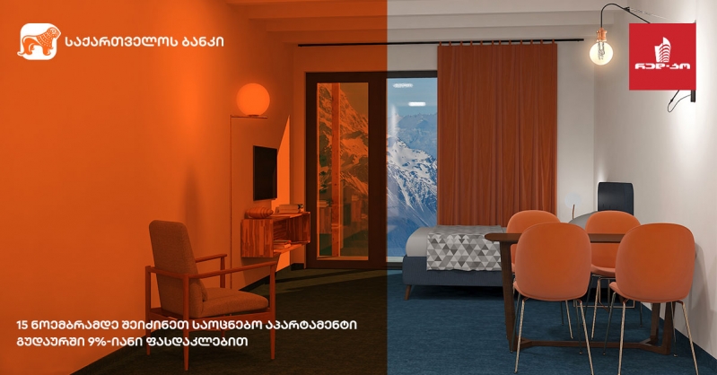 საქართველოს ბანკი და დეველოპერული კომპანია “რედ-კო” ერთობლივი აქციის შესახებ აცხადებენ. მომხმარებელი, ვინც 15 ნოემბრამდე საქართველოს ბანკის იპოთეკური სესხით შეიძენს აპარტამენტის ტიპის ბინას გუდაურში, “New Gudauri”-ს საცხოვრებელ კომპლექსში, ბინის ღირებულებაზე 9%-იანი ფასდაკლებით ისარგებლებს.