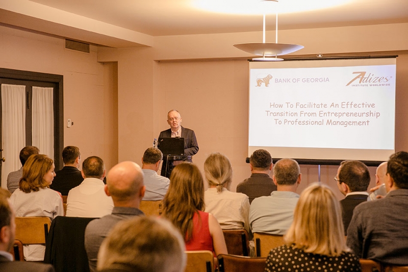 იცხაკ ადიზესმა სემინარის მონაწილეებს გაუზიარა საკუთარი 40 წლიანი გამოცდილება იმ მეთოდოლოგიის შესახებ, რომელიც კორპორაციებს აძლევს შესაძლებლობას, დესტრუქციული კონფლიქტების გარეშე, დაჩქარებული ცვლილებებით მიაღწიოს განსაკუთრებულ შედეგებს. მან ყურადღება გაამახვილა იმ კონკრეტულ ინსტრუმენტებსა თუ წესებზე, რომელიც ეხმარება ბიზნესს, სწორად მართოს პროცესები.