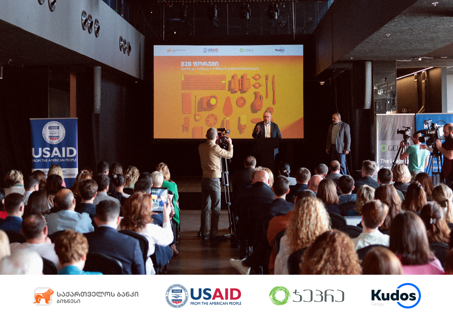 საქართველოს ბანკის, USAID-ის ეკონომიკური უსაფრთხოების პროგრამის, ჯეპრას და Kudos Georgia-ს ერთობლივი მხარდაჭერით, მცირე და საშუალო ზომის ბიზნესებისთვის B2B ფორუმი გაიმართა. ფორუმის მიზანს ამ ბიზნესების მხარდაჭერა და წახალისება წარმოადგენს.