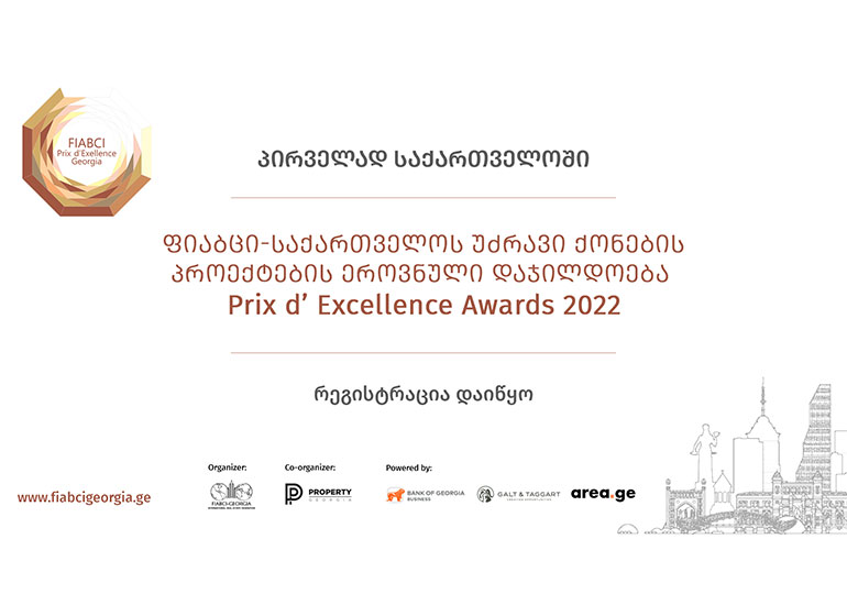 FIABCI-Georgia Prix d’ Excellence ღონისძიება რეგიონში პირველად საქართველოში გაიმართება. დაჯილდოება საქართველოს ბანკის, გალტ ენდ თაგარტისა და დიჯითალ არეას მხარდაჭერით ტარდება. ღონისძიების პარტნიორები ასევე არიან: Property Georgia, Colliers International Georgia, PwC Georgia, საქართველოს ბიზნეს ასოციაცია (BAG), საგამოფენო ცენტრი Expo Georgia და საქართველოს უძრავი ქონების ეროვნული ასოციაცია (GNARE).