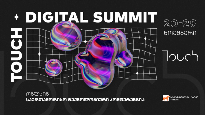 საქართველოს ბანკის მხარდაჭერით, ცენტრალური და აღმოსავლეთ ევროპის პირველი ტექნოლოგიური კონფერენცია Touch Digital Summit გაიმართება. ღონისძიება 20 ნოემბერს გაიხსნება. 10 დღიანი ონლაინ კონფერენცია 100-ზე მეტ კომპანიას და 1000-ზე მეტ მონაწილეს ევროპიდან, ცენტრალური აზიიდან და მსოფლიოს სხვადასხვა კუთხიდან გააერთიანებს. პროექტის მთავარი მიზანია ხელი შეუწყოს მონაწილეების სამომავლო პროფესიულ განვითარებას და სასარგებლო კავშირების დამყარებას.