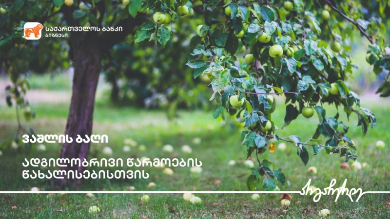 საქართველოს ბანკი მცირე და საშუალო ბიზნესის მხარდაჭერას განაგრძობს. ადგილობრივი წარმოების ხელშეწყობის მიზნით ბანკმა 250,000 ლარის ოდენობის ინვესტიციის მობილიზება შეძლო, რაც გორის სოფელ შაშვებში, ვაშლის ბაღების გაშენებასა და წვეთოვანი სარწყავი სისტემის მონტაჟს მოხმარდა. ვაშლის ბაღები 5,8 ჰა ტერიტორიაზე გაშენდა. 11 200 ცალი იტალიური ვაშლის ნერგიდან მოსავალს მეწარმე მომავალი წლიდან ელოდება. ვაშლის ბაღის მოვლის საქმიანობაში სეზონურად 15 ადამიანია ჩართული. წარმოებული პროდუქციის გაყიდვას მეწარმე ადგილობრივ ბაზარზე გეგმავს.