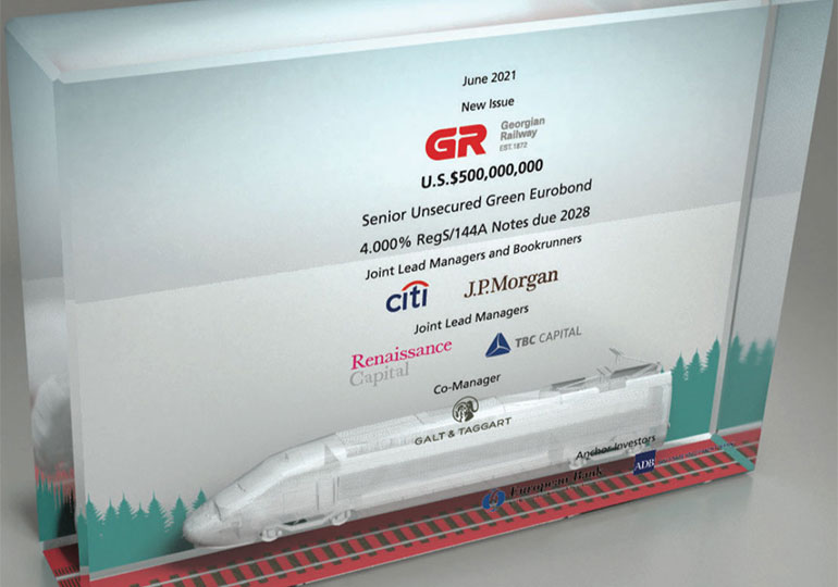 საქართველოსთვის სტრატეგიული მნიშვნელობის კომპანია „საქართველოს რკინიგზის“ ბონდები უკვე სამი თვეა, ლონდონის საფონდო ბირჟაზეა განთავსებული. ვადა – შვიდი წელი, საპროცენტო განაკვეთი – წლიური 4%, მოცულობა – 500 მლნ აშშ დოლარი, სტატუსი – მწვანე. ეს პირობები საქართველოსა და მისი რკინიგზისთვის უპრეცედენტო შედეგია.