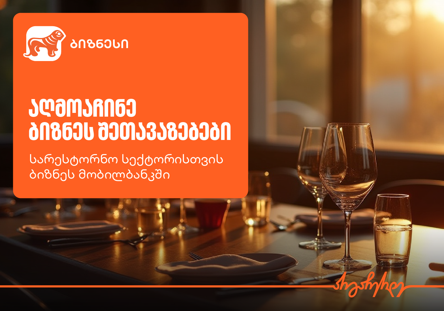 სარესტორნო ბიზნესს, რომელიც ცვალებად გარემოში ოპერირებს, სანდო პარტნიორები და ეფექტური ინსტრუმენტები სჭირდება, რათა ყოველდღიური პროცესები გაუმარტივდეს და ბიზნესის განვითარების შესაძლებლობები გაზარდოს. სწორედ ამ მიზანს ემსახურება საქართველოს ბანკისა და პარტნიორი კომპანიების ერთობლივი შეთავაზებები, რომლებიც საქართველოს ბანკის ბიზნეს მობილბანკში შეგიძლიათ აღმოაჩინოთ. შეთავაზებები მოიცავს ფასდაკლებებსა და უფასო სერვისებს ფინანსურ, ტექნოლოგიურ, ლოგისტიკურ თუ სხვა მიმართულებებზე. მათ შორისაა: