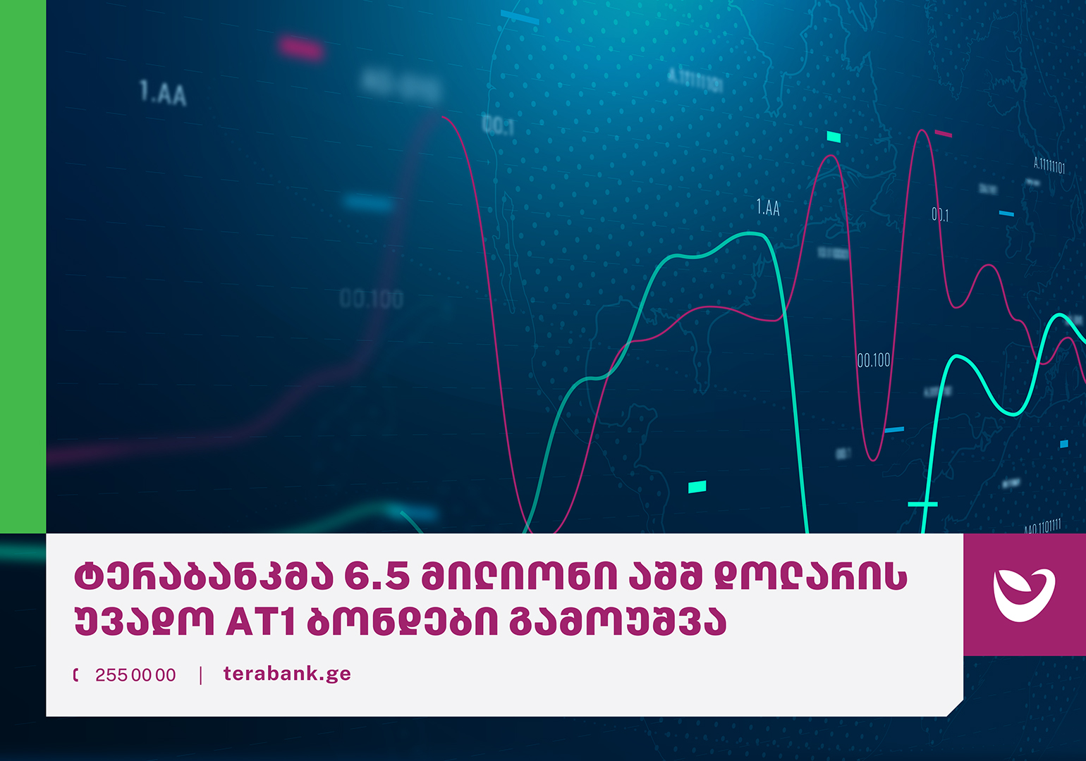 ტერაბანკმა ბაზარზე 6.5 მილიონი აშშ დოლარის ოდენობის უვადო AT1 ბონდები გამოუშვა. ფინანსური სიახლე ტერაბანკს საშუალებას მისცემს, საკრედიტო პორტფელი გაზარდოს და მომხმარებლებს, განსაკუთრებით კი მცირე და საშუალო ბიზნესს, რომელიც ბანკის სტრატეგიული სეგმენტია, კიდევ უფრო მრავალფეროვანი და მათ საჭიროებებზე მორგებული სასესხო პროდუქტები თუ სერვისები შესთავაზოს.