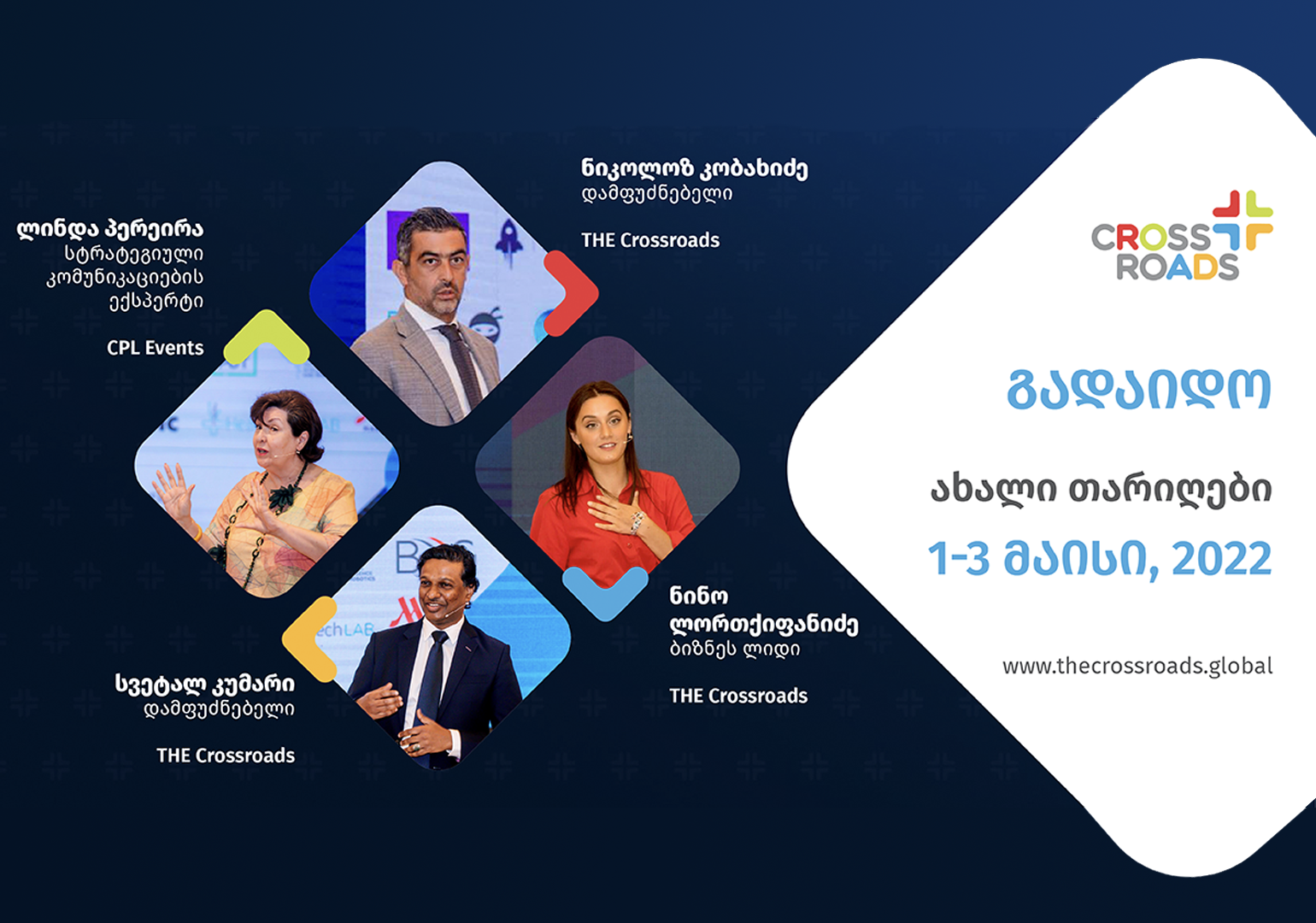 სხვადასხვა შესაძლო თარიღების და რეგიონის ბიზნეს ღონისძიებების კალენდრის განხილვის შემდგომ, THE Crossroads-ის გამხსნელი ღონისძიების გამართვა 2022 წლის 1-3 მაისს გადაწყდა. მიგვაჩნია, რომ აღნიშნული პერიოდი საუკეთესოა გაშუქებისა და იმ გავლენის მოსახდენად, რისთვისაც აღნიშნული პლატფორმა შეიქმნა.