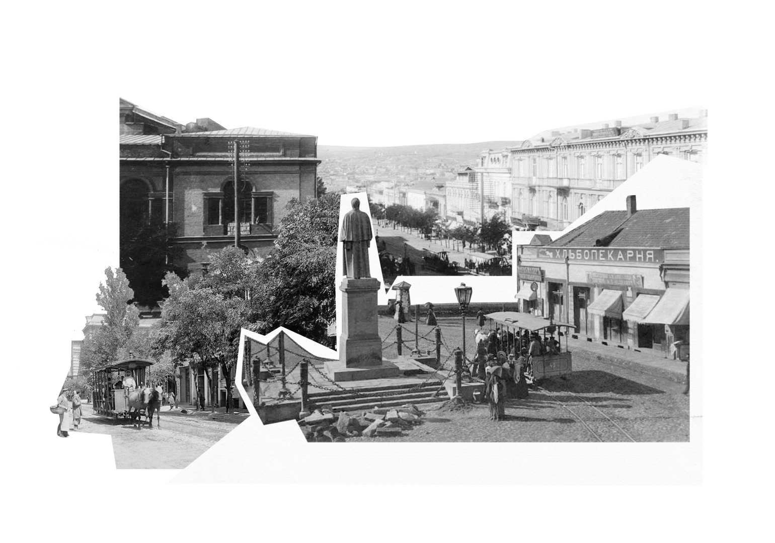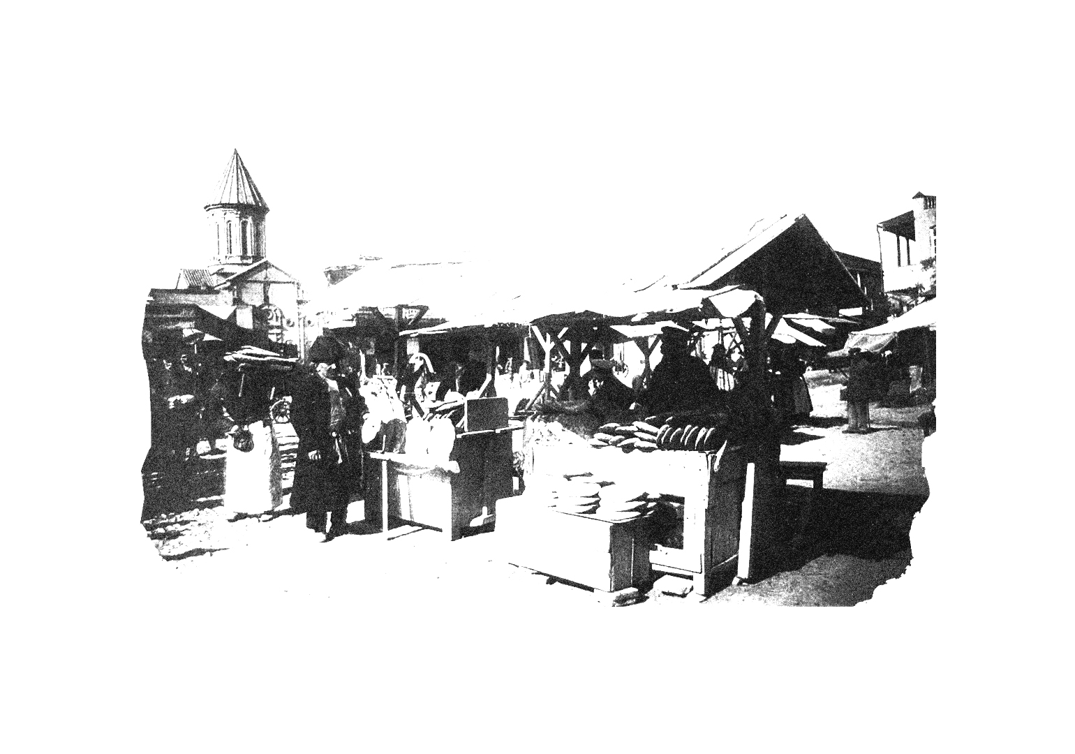 „შუა-დღე მოტანებულია. გაზაფხულის მზეს გარედ გამოურეკია ხალხი და ქალაქის ქუჩები მოსეირნეებით სავსეა. ვარანცოვის ძეგლის პირ-და-პირ და მიხაილის ქუჩის ყურეში ჯგუფ-ჯგუფად სდგას რა გინდა რა ჯურის ხალხი. ერთად დგანან რამდენიმე კინტო, ერთიც, როგორც ეტყობა გაცვეთილ კაბაზე და გაპოხილ მოსკოვის კარტუზზედ, გაკოტრებული მეწვრილმანე. იმათვე მისტოლებიათ, იქვე, სახაბაზოდან გამოსული, ფქვილში გაგუნგლული რაჭველი, რომელიც, თითქოს სხვას ყურს არავის უგდებს და მარტო თავის ჩიბუხს დასწაფებია. პირ-და-პირ გაჩერებულა ორი მეფაიტონე და იმათაც შურიანი თვალებით ერთი მხრისკენ მიუპყრიათ. ყველანი ერთი მხრისკენ გაიცქირებიან – ეტყობათ რაღაც შესანიშნავს მოელიან. მოისმის ბაყლების ბიჭების ყვირილი: „იდოთ!.. იდოთ!“ და მართლა გამოჩნდა სამ ცხენ შებმული ვაგონი…“, – „სცენა ცხენის-რკინის გზაზე“. არაგველი [დავით კეზელი], 1883 წ.